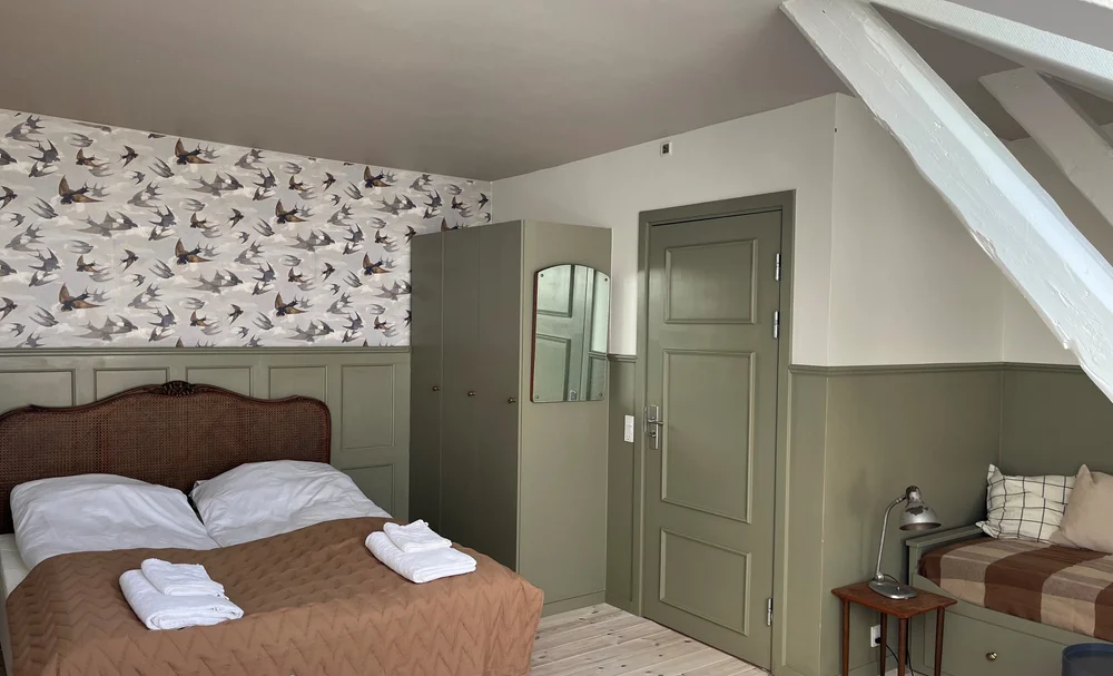Vi tilbyder følgende overnatning på dobbeltværelser, flere med twinbeds og i Skrædderens Hus er der også et enkeltværelse.
